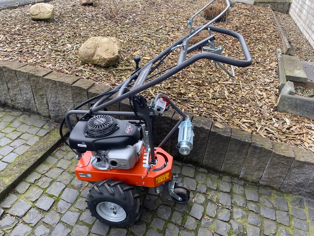 Fräsbreite 30 cm Frästiefe bis 60 cm Motor Kawasaki FJ 180D Nennleistung 4,2 kW (5,5 PS) Antrieb 4x4 Allradantrieb (Keilriemenkupplung) Schaltung 2 Arbeitsgänge und Freilauf Kraftstoff Benzin Gewicht (netto/brutto) 73/82 kg
